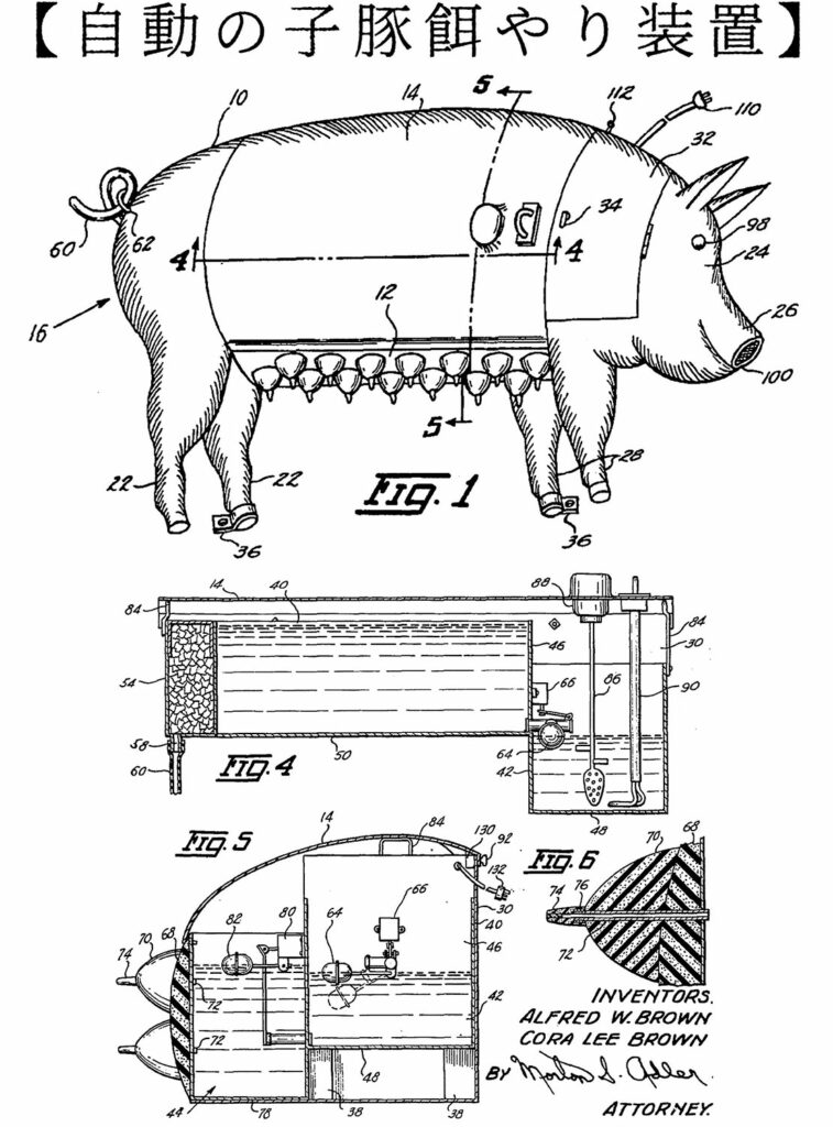 生まれたてのかわいい子豚たちにまるでお母さん豚が母乳をあげるような感じで液状の餌を与える装置。装置自体が母豚を模した形になっていて、子豚に安心感を与え、なるべく自然に餌を飲めるように配慮。さらに、タンク内の餌の温度管理を行ない、設定された時間になると電気によってバルブが制御され、餌やり用のタンクに自動で餌が流れ込む仕組み。母豚の実際の鳴き声まで餌の時間になると流れる、究極の自動子豚餌やり装置だ。