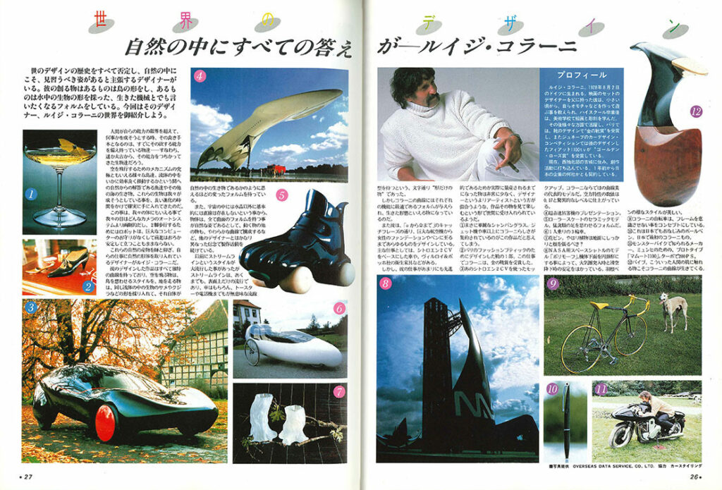 「世界のデザイン」で紹介されているのはドイツの工業デザイナー、有機的な流線型フォルムを得意としたルイジ・コラーニ(1928〜2019年)。当時、日本でも大人気で、作品集なんかも出てましたね。