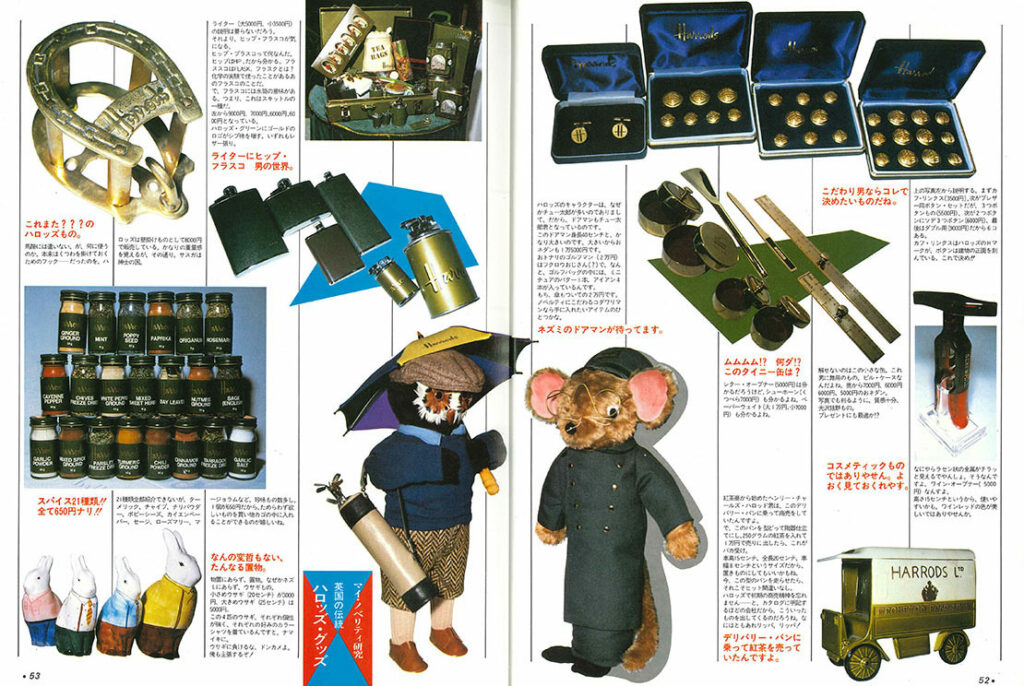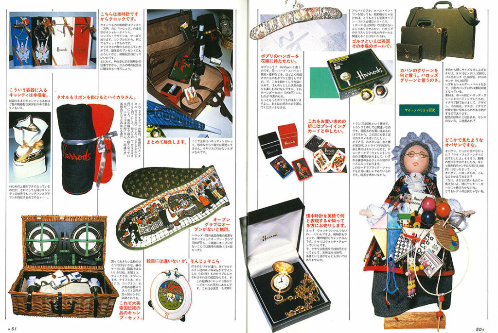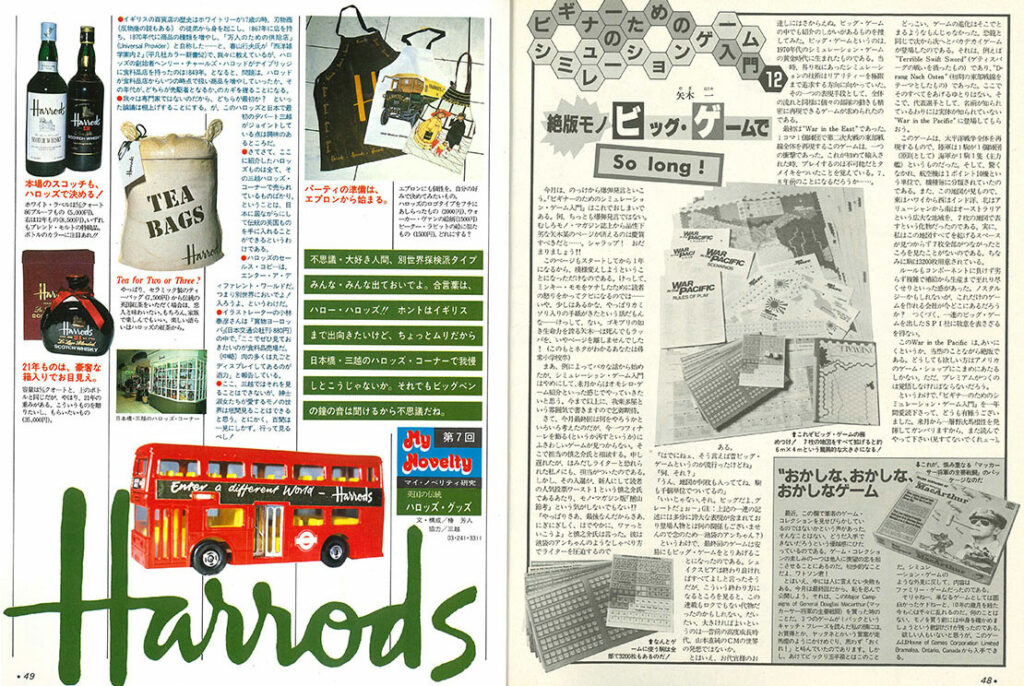 「My Novelty」では、イギリスの百貨店「ハロッズ」のノベルティをカラー5ページで紹介してます。イギリスまで行けなかったので、日本橋三越にあったハロッズショップでかき集めたグッズをいろいろと並べてます。でも、ハロッズショップは閉店しちゃったので、今同じ企画をやるならイギリスまで行かんとね。