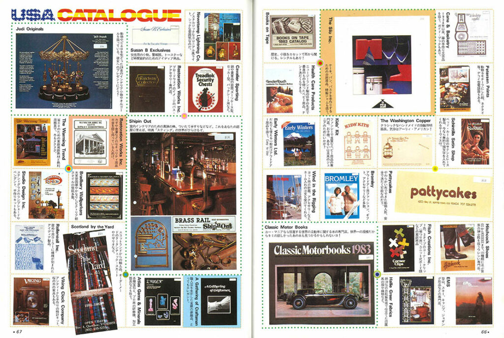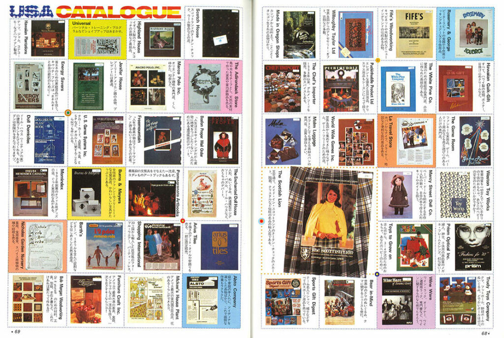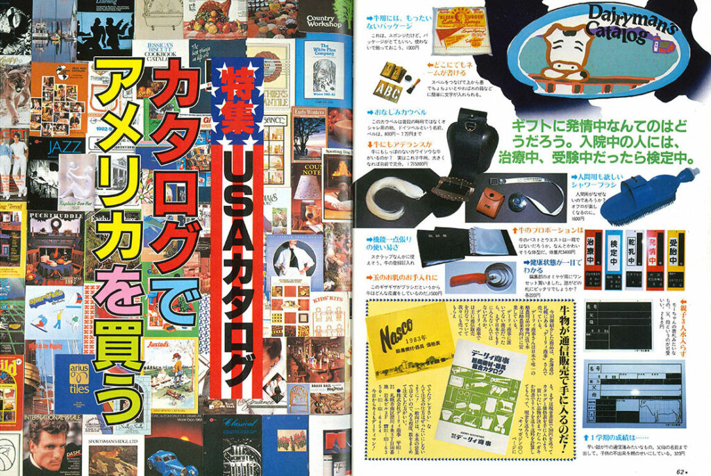 「Dairyman’s Catalog 牛もので決める!」の最後のページから続くのは、特集「USAカタログ カタログでアメリカを買う」はカラー17ページ構成。数えるのが面倒くさくなるくらいたくさんのアメリカの通販カタログをぎっちり詰め込んで、紹介してます。