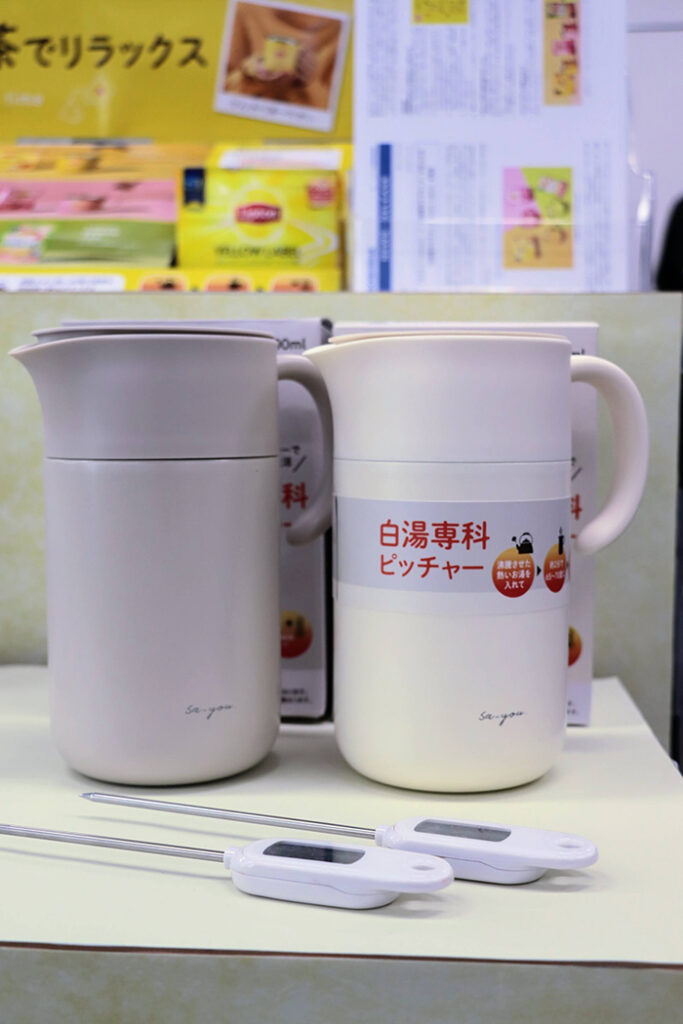 白湯専科ピッチャーは、熱湯1Lを 約2分で65~70℃まで下げ、その湯温を約1時間温かさキープ。手間なくたっぷりの白湯を楽しめる。秋の夜長に重宝するピッチャーだ。