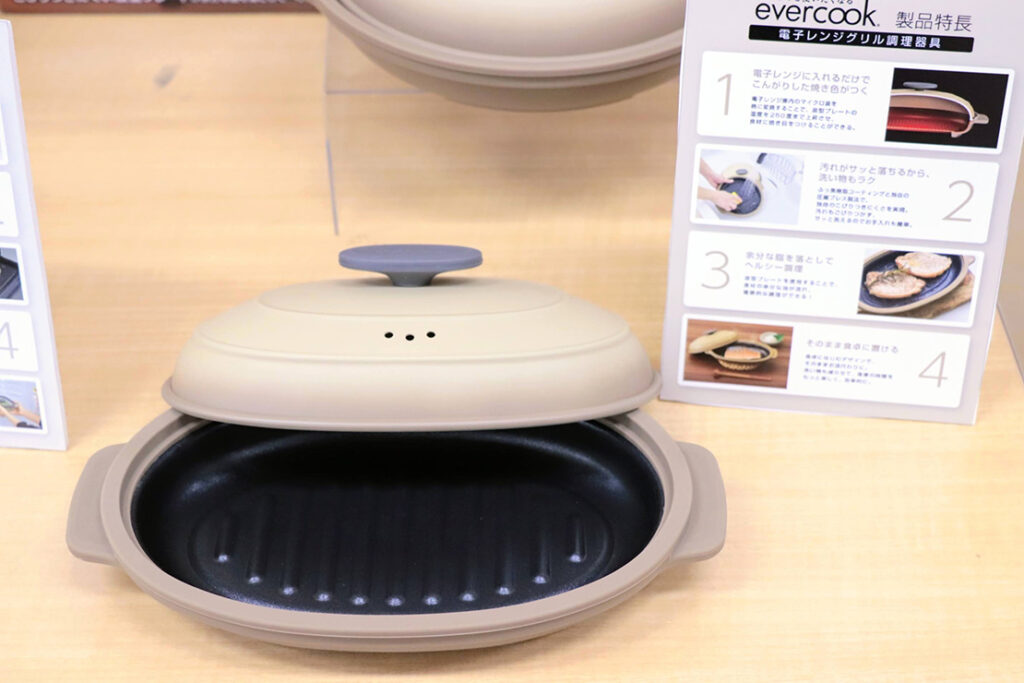 アルミ製 で表面はふっ素コーティング。電子レンジで焼き目がつく火力。グリルやコンロより洗い物が楽なのがポイント。電子レンジでグリル調理⇒そのまま食卓へ