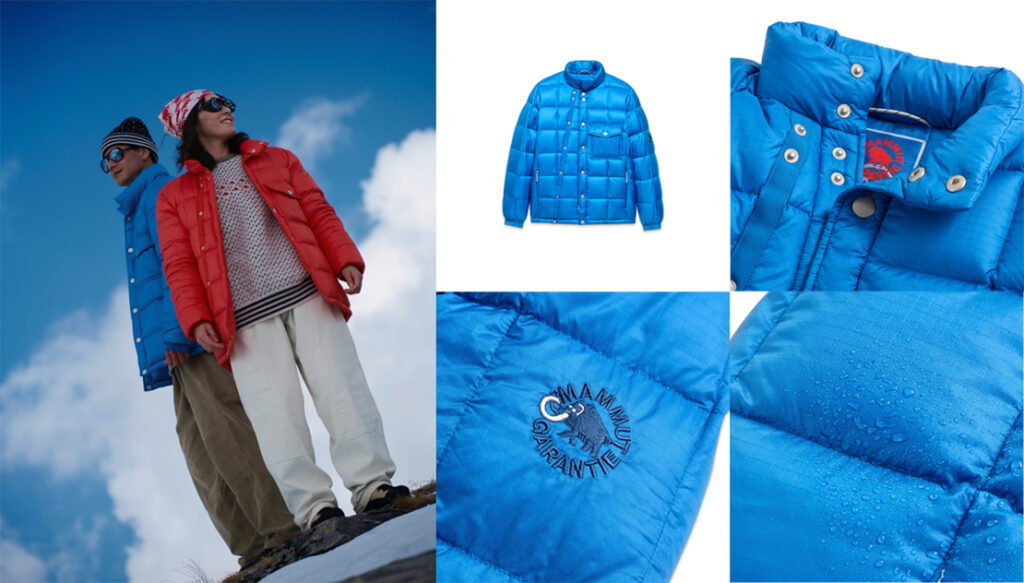 今回のコラボコレクションは1969年に遠征隊が実際に着用した衣類をベースに、ヴィンテージファッションに造詣の深いナイジェルウ・ケーボン氏が独自の視点でよみがえらせたアイテム全12点。ベンタイルコットン、スコットランドウール、スイス軍毛布生地といった時代を超えて愛されてきた伝統的素材に、マムートが得意とするパーテックス、クァンタム、ドライ・ダウンといった最新のテクノロジーを融合させた。