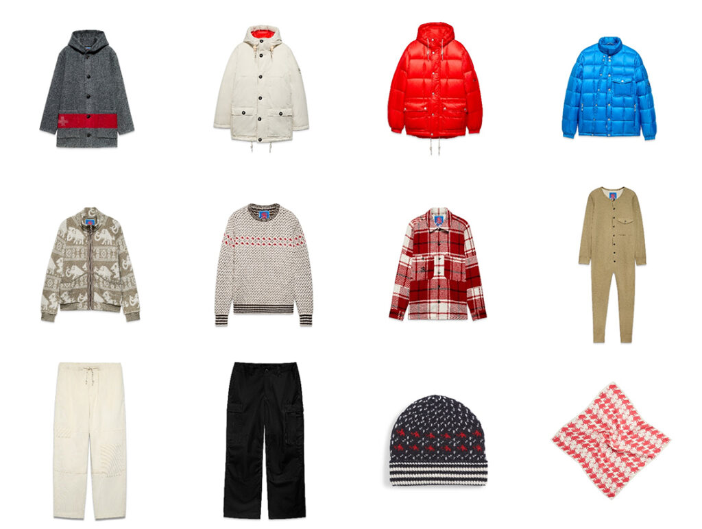 中段左から、ウール ミッドレイヤージャケット 価格7万4800円、ウール ミッドレイヤー セーター 価格4万1800円、シャツ 価格4万9500円、ベースレイヤー 価格3万3000円