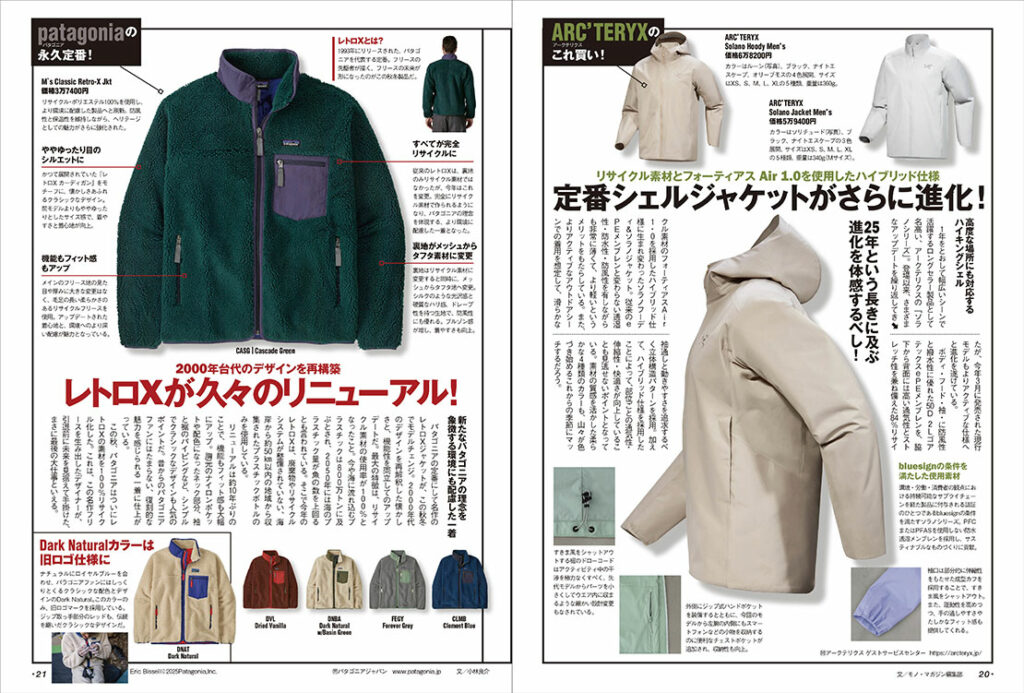 風たちぬ、今は秋……食欲の秋、読書の秋、スポーツの秋といろいろあるけど、やっぱりモノマガ読者にとってはソトアソビの秋でしょ!? というわけで、今回も最新のアウトドアウエアから本当に使えるアウトドアギアをガッツリと紹介する! そして、第2特集ではアウトドアと親和性のあるワークウエア&シューズをたっぷりと。裏表紙からの「アークテリクス アルファ SV ジャケット徹底解剖」もぜひチェックしてほしい。この秋のモノ・マガジンはアウトドア&ワークウエア情報ギガ盛りでお届け!