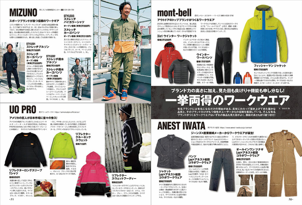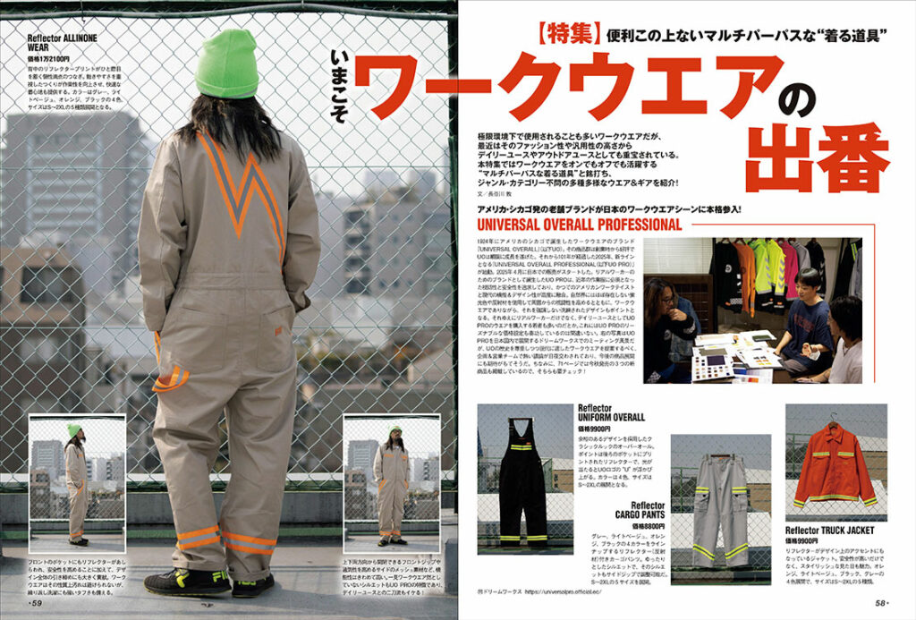 極限環境下で使用されることも多いワークウエアだが、最近はそのファッション性や汎用性の高さからデイリーユースやアウトドアユースとしても重宝されているのは周知のとおり。本特集ではワークウエアをオンでもオフでも活躍するマルチパーパスな着る道具と銘打ち、ジャンル・カテゴリー不問の多種多様なウエア&ギアを紹介!