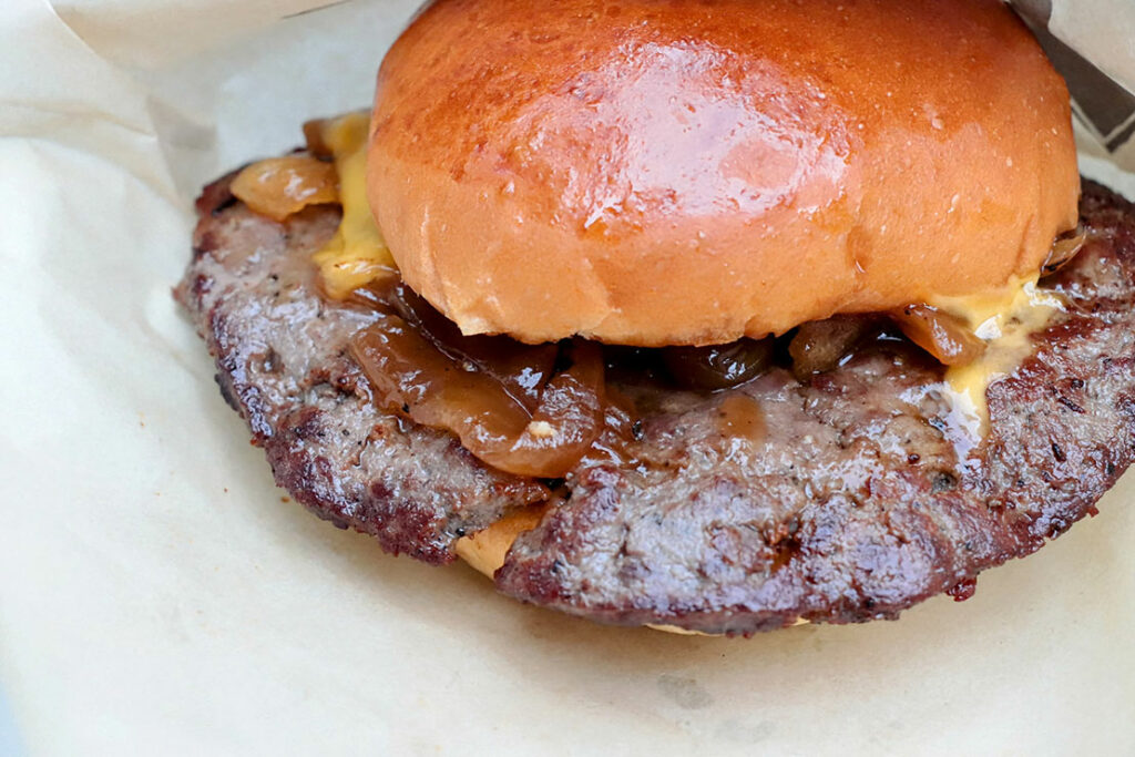旨味がぎっしり詰まった、近江牛100%のパティ。バンズからはみ出すほどのボリュームで、見た目・食感・味わいのすべてが一級品。滋賀県のパン屋から直送されたこだわりのバンズとともに、食べ応え抜群のハンバーガー。価格は税込2,000円。