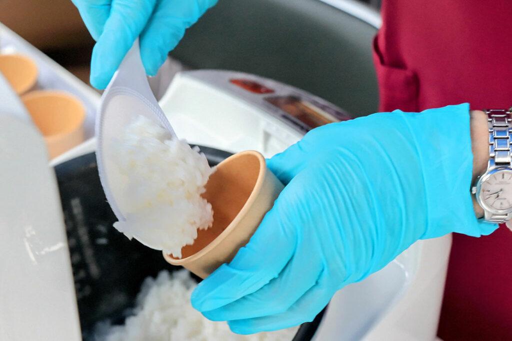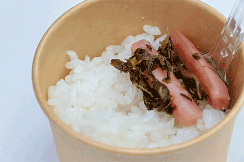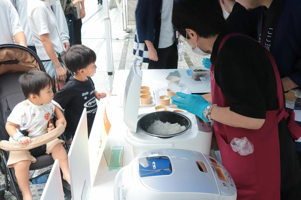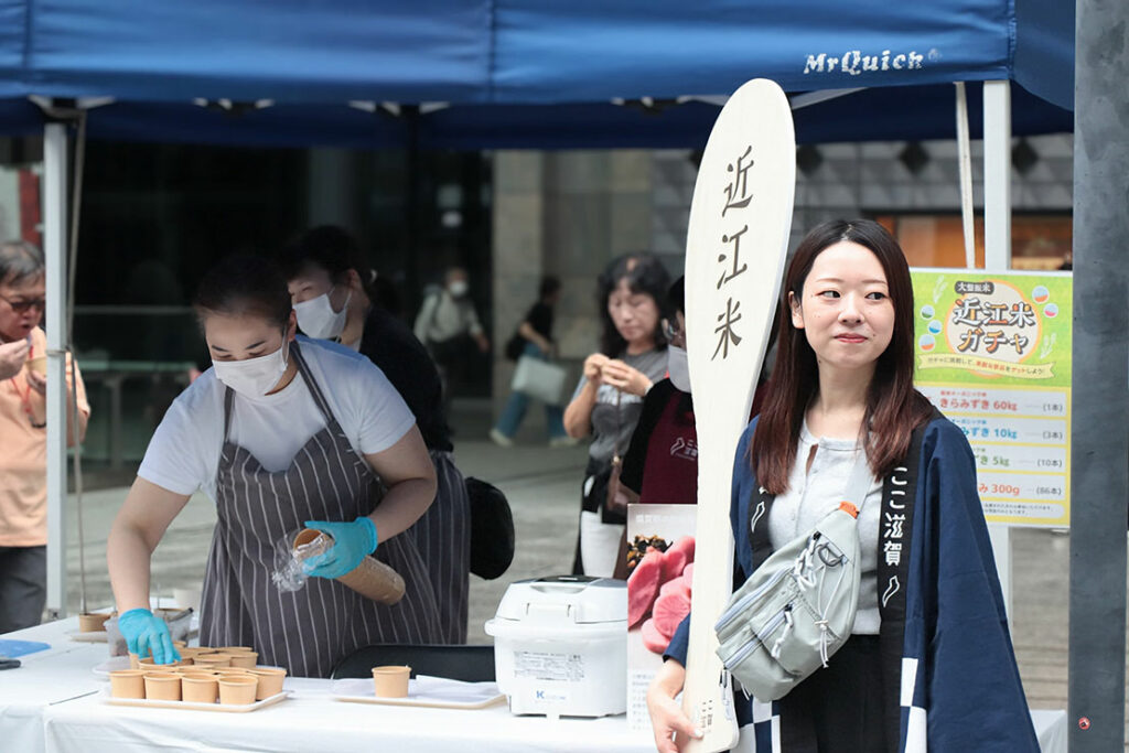 自然豊かな琵琶湖の水で育てられた近江米の新米「みずかがみ」。炊きたて約800食分を来場者にふるまった。この近江米「みずかがみ」は、滋賀県で開発され2013年にデビューをしたお米だ。炊き上がりはキラキラつややか。ほどよい粘りとまろやかな甘みが特徴で、冷めてもおいしく、お弁当やおにぎりにも最適なお米だ。