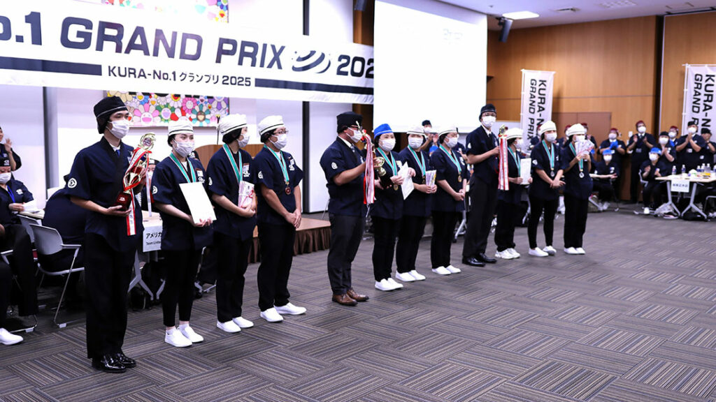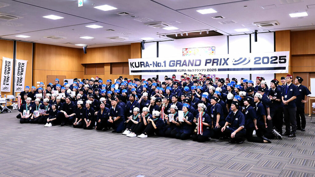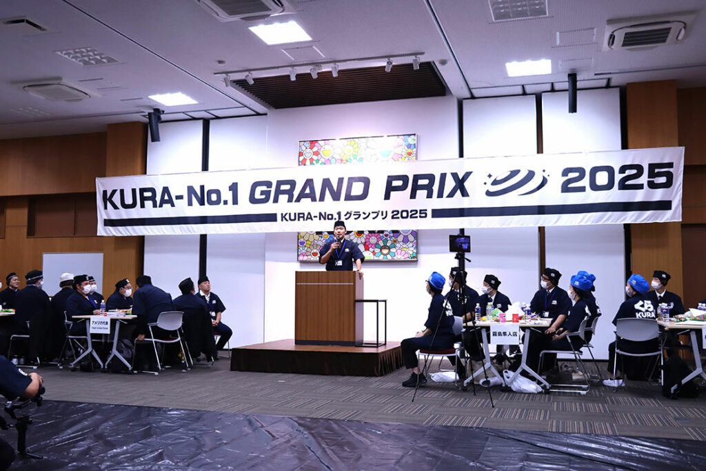 2025年・第4回「KURA-No.1 GRAND PRIX」では、世界約690店舗の中から選ばれた米国代表・台湾代表に加え、第1回グランプリ優勝の「高石店」(大阪府高石市)、第2回の「久留米合川店」(福岡県久留米市)、第3回の「一宮尾西店」(愛知県一宮市)といった歴代チャンピオンチームもエントリー。全チームによる代表宣誓をもって、長き戦いの幕が切って落とされた!