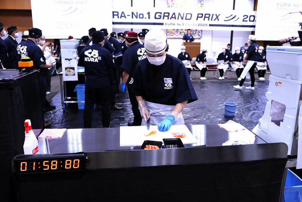 回転寿司チェーン「くら寿司」や「無添蔵」、「くら おさかな市場」を運営するくら寿司(本社:大阪府堺市)は、2022年から続き今回で4回目となる「KURA-No.1 GRAND PRIX(くらワン グランプリ)2025」世界大会を2025年9月2日(火)に開催した。この大会は、全国のくら寿司約550店、アジア60店、米国81店、総勢約55000人の従業員の中から、予選を勝ち抜いた店舗チームが3人一組で出場。「お持ち帰り部門」「ネタ切り部門」「デザート部門」の3部門で調理の腕を競い、頂点を決定する。今回、国内22店舗に加え、台湾、米国代表チームの計24店舗が世界一の座をかけて激突した。