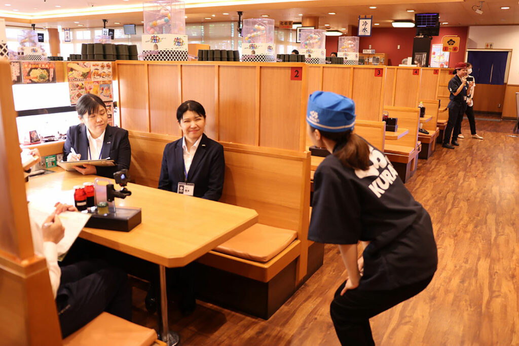 大会会場と同じ敷地内にある、くら寿司東貝塚店で開催された接客コンテスト。そのロールプレイングは、接客とは何かを改めて問い直す場であり、接客の真価が試される競技でもある。