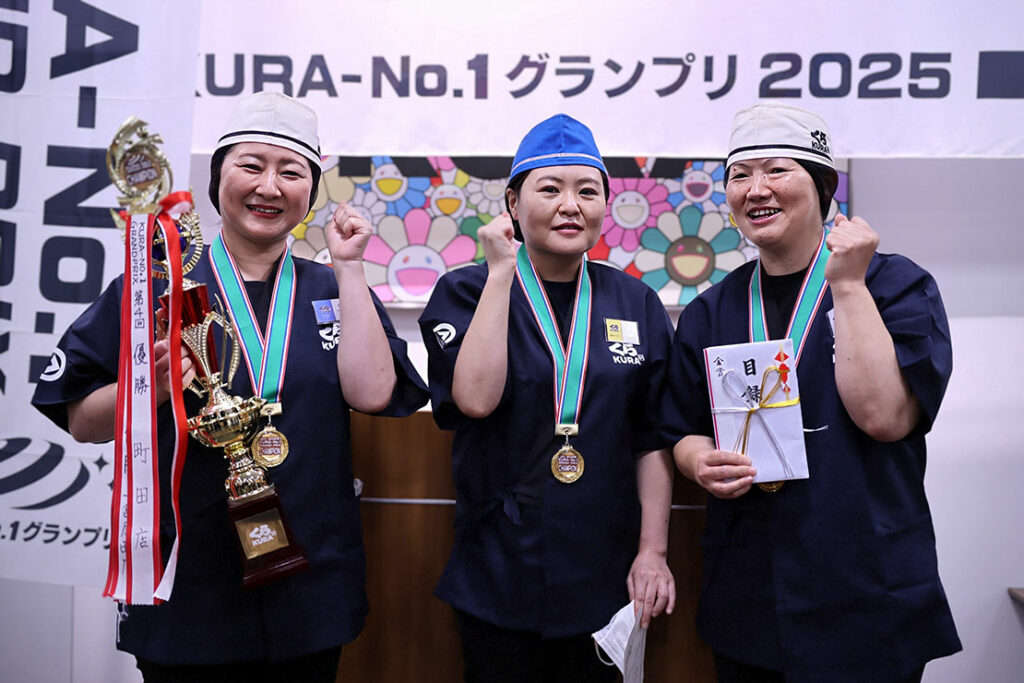 KURA-1グランプリ2025で優勝の町田店の山本さん、富澤さん、鈴木さん。