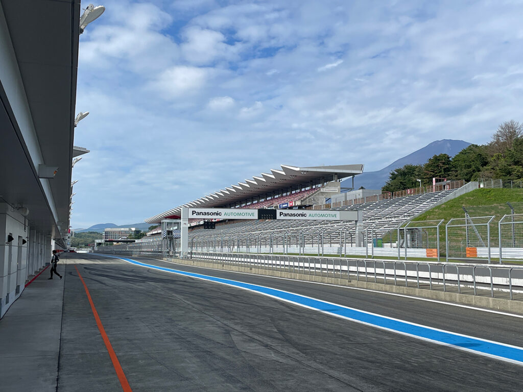 日本屈指の高速サーキット、富士スピードウェイ。全開まで回していないので1コーナーへの進入は3速で。そこから下り勾配で2コーナー入り口あたり姿勢変化のためのブレーキング、そして100Rはアクセル操作だけでクリアしていくのだけれど、路面がウェットでアクセルの抜き方次第ではリアがムズムズし、スリリング。昨年練習走行中に赤旗を出した筆者は今回はキチンとトラックモード(本格的にヤバい時だけ制御が介入する)はオンだ。アドバンコーナーを2速でクリアし、高速コーナーの300Rは踏め踏めモードで攻めていく。ダンロップコーナーも2速で。ここからが勾配が急でコースを覚えておかないとイケナイ。13コーナーが最終コーナーと勘違いしてしまい、GRスープラコーナーにオーバースピードで進入してしまうことに(ジツは2回やらかした。編集部注:……)。最終コーナーのパナソニックコーナーは気持ちだけ焦ってしまうとストレートに入るのが遅くなったり、コースアウトしそうになったりするので、きっちりとライン取りしたい場所。そうすると長い長いストレートで最高速を犠牲にしないで済む。