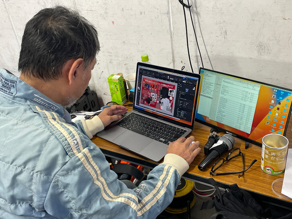それにしても。悲しきエディターの性、デザイナー若山はピット内でも「今、締切中なんだよぉ」と作業に励まれておる。