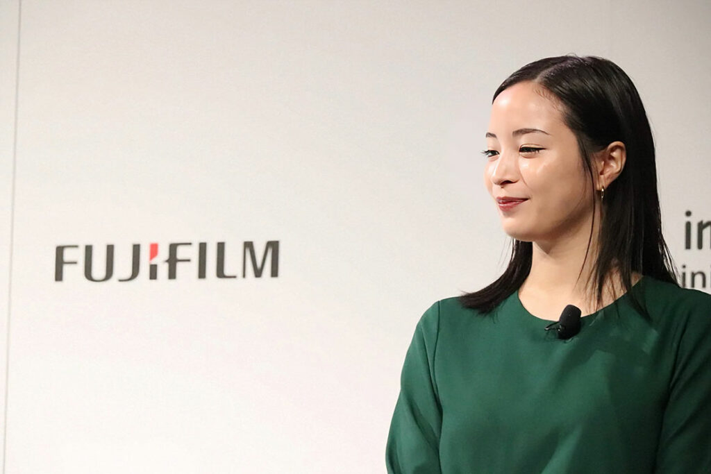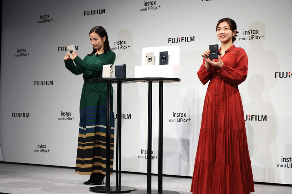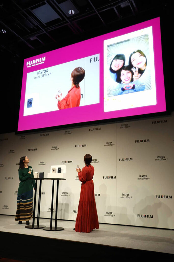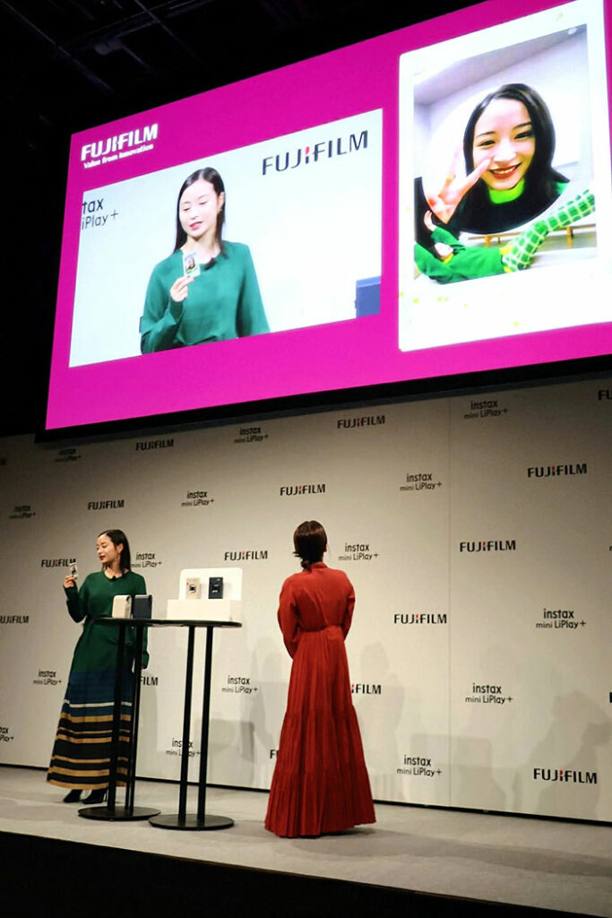 新製品「instax mini LiPlay+™」の発表会に、俳優の広瀬すずさんと、お笑い芸人「3時のヒロイン」の福田麻貴さんが登壇。ふたりは事前に新製品を体験。新機能「Layered Photo Mode(レイヤード フォト モード)」や「サウンド機能」を使ったチェキプリント™を披露し、会場を盛り上げた。