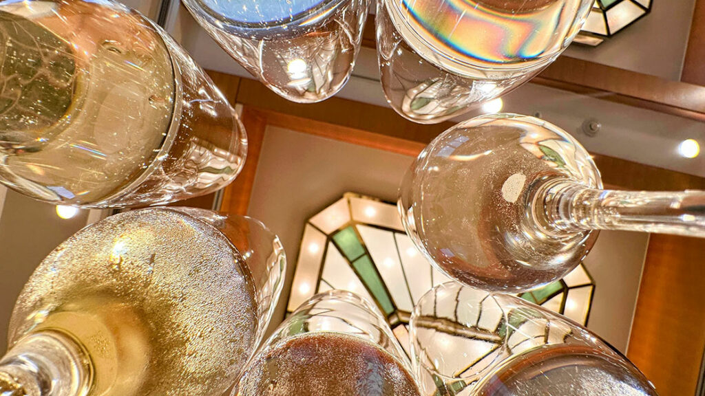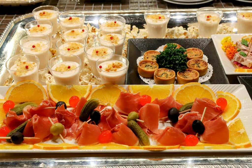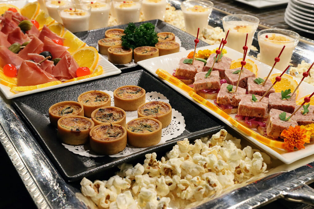 会場を新設ラウンジ「RENDEZ-VOUS AWA」へ移し、いよいよ料理とのペアリング体験へ。テーブルに並んだのは、生ハム、タルト、テリーヌなど、彩り豊かなメニューの数々。中でも意外な相性を見せたのが、塩気の効いたポップコーン。CAVAの繊細な泡と酸味が塩味をやさしく中和し、味わいに奥行きを与えてくれる。CAVAの新たな楽しみ方を発見する、印象的なひとときとなった。