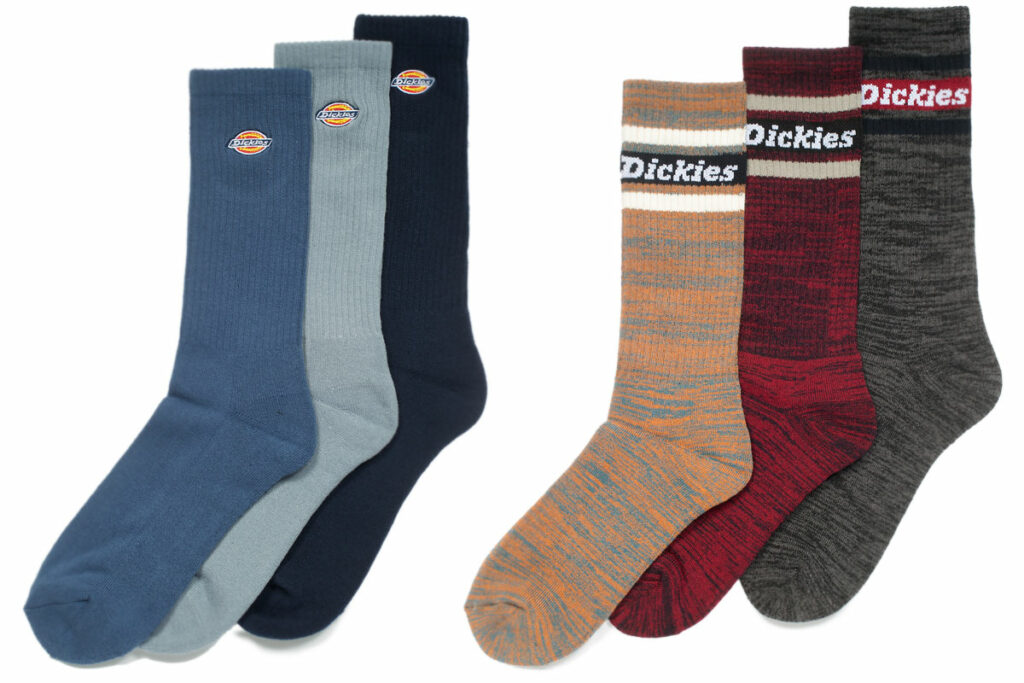 世界約100ヶ国で展開するカジュアルブランド「ディッキーズ」とのコラボ。パイル編みでさらっと心地よい履き心地。吸湿発熱素材で防菌&消臭効果も。価格各1089円(3足組)11月5日発売予定。