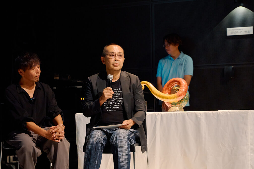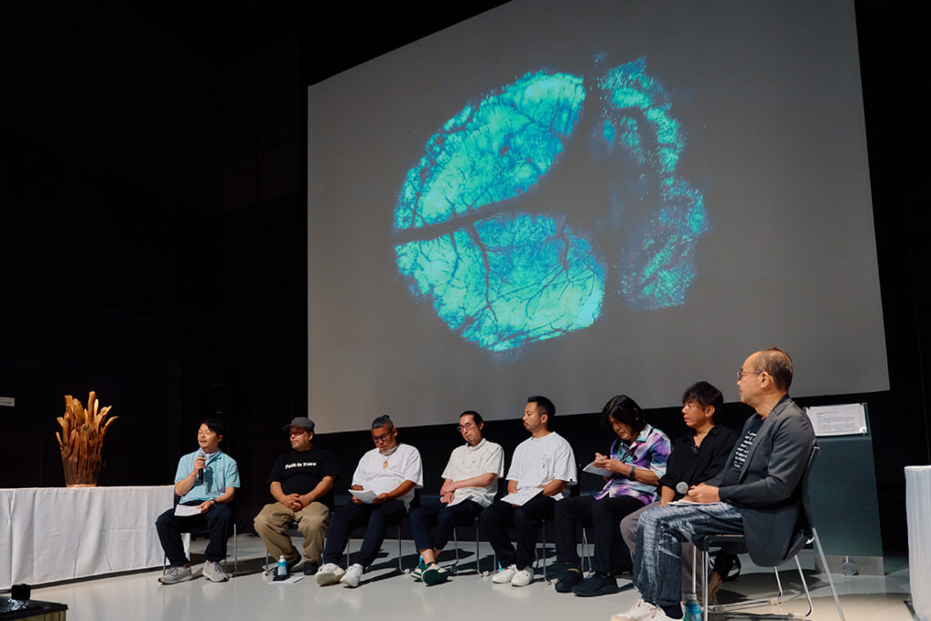 東大先端研AADからは、AADアドバイザーである河口洋一郎氏( CGアート)、社会連携協力研究員の近藤真生氏(インタラクティブアート)が、アーティストとして参加。また、筑波大芸術系から内山俊朗氏、勝部里菜氏、猪瀬陽氏がアーティストとして参加した。