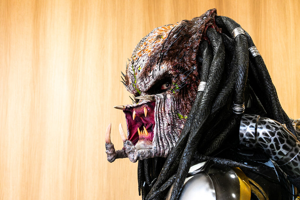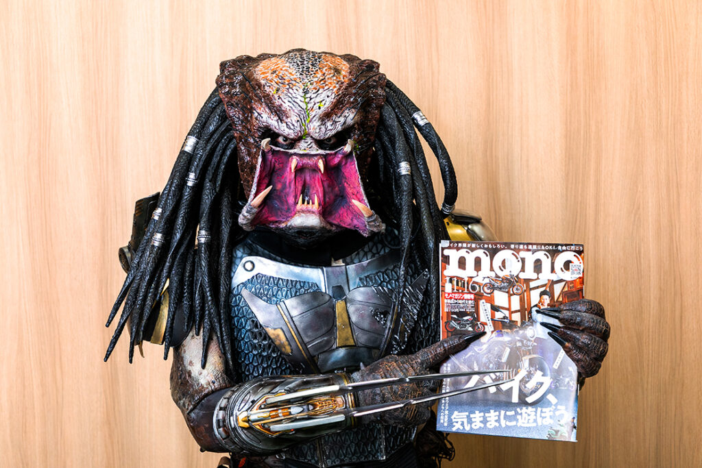そんな中、10月30日放送のTOKYO MXの人気情報バラエティ『5時に夢中!』にて突如プレデターが登場し、視聴者の度肝を抜いた! 実はこのプレデター、あまりに好き過ぎて自ら全身スーツを作り上げた、生粋のプレデターファンの方。プレデター最大の特長である四方に大きく開く顎も完全再現され、凄まじいインパクト! 『モノ・マガジン』編集部は、謎の某プレデターコスプレイヤーさんにインタビューを敢行。そのスーツの秘密に迫り、細部に至るまで激写した!