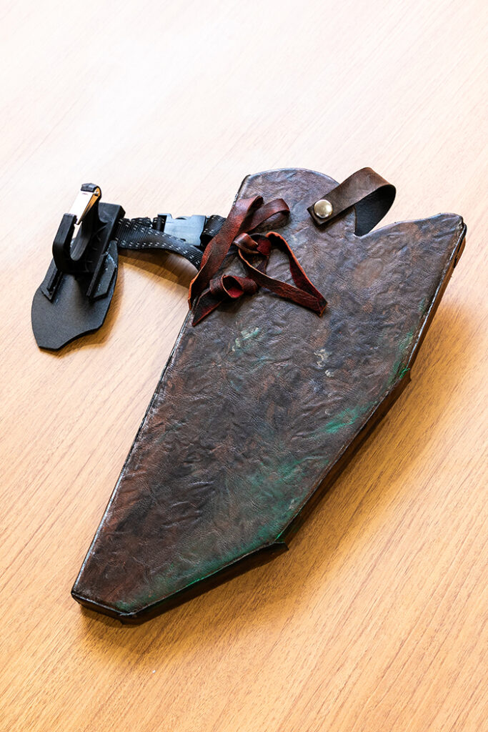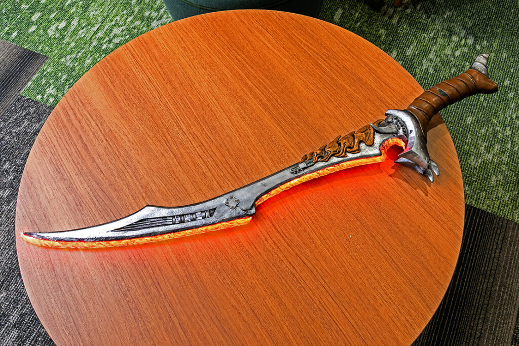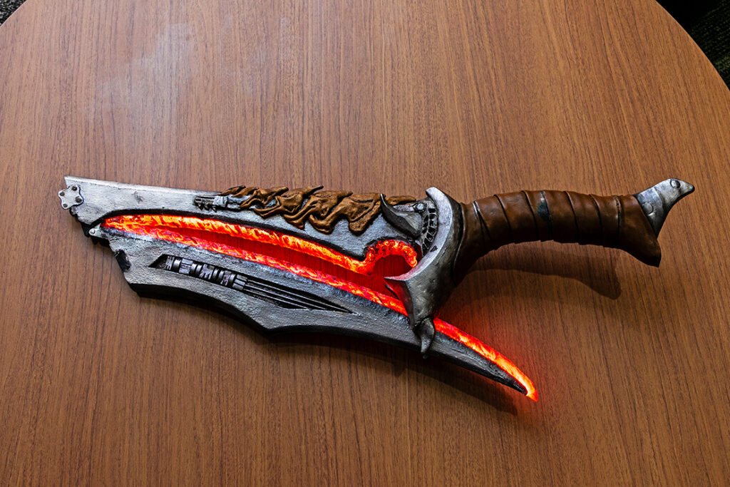 最新作『プレデター:バッドランド』のメインビジュアルでも主人公デクが構えているソード武器。刃部分が赤く発光。折り畳みの可能で、鞘に収納できる。