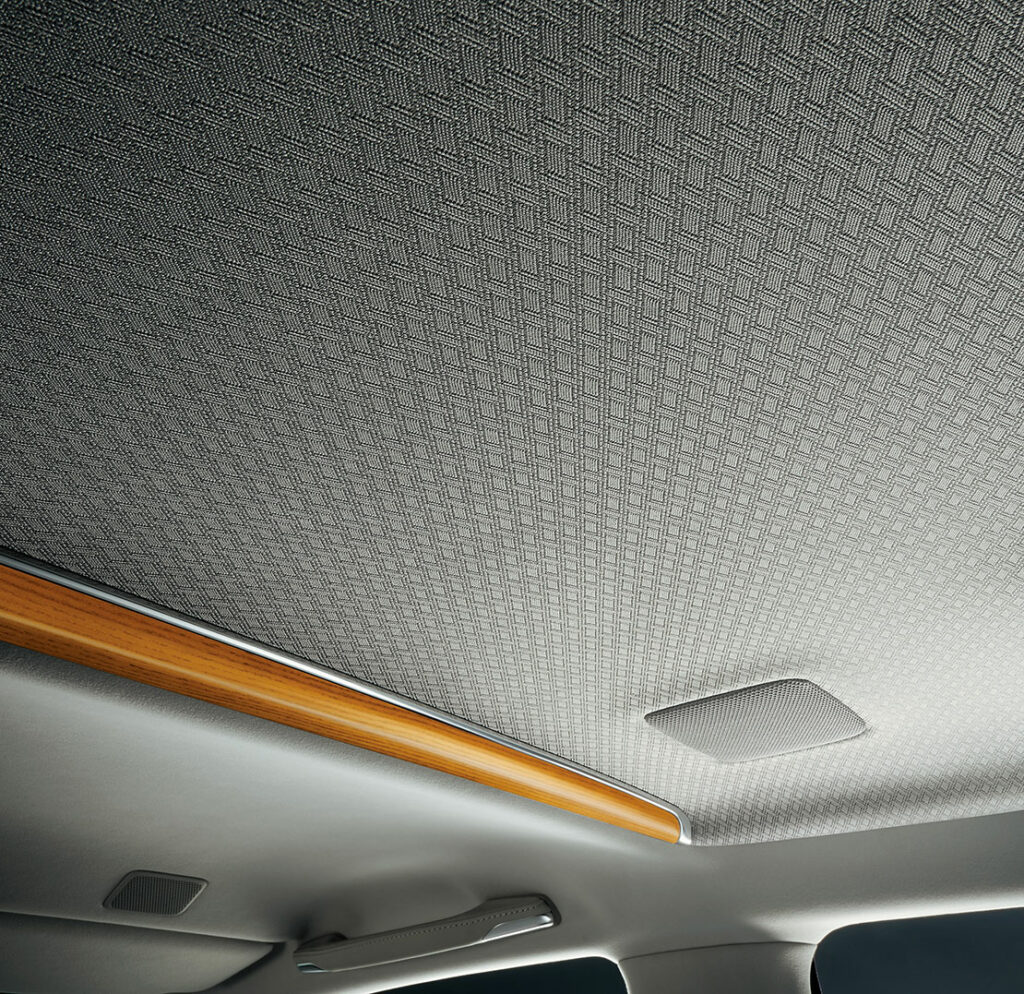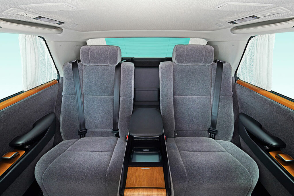 後席スペースは広いのは当たり前だが、頭上スペースにもこだわっている。居室天井の中央を凹ませ、高くした「折り上げ天井様式」でまさに走る和風建築なのだ。