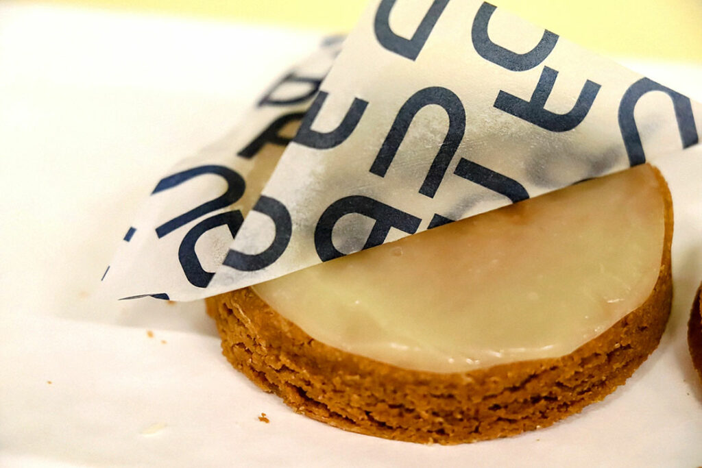 かりっとした食感の薄焼きラングドシャに、とろける口どけのキャラメルを挟みこんでいる。キャラメルには、自家製の生バターを仕上げに溶かし込むことで、深く心地よいコクの余韻が広がる。ラングドシャの軽やかな歯ざわりと、コク深くなめらかなキャラメルが調和した、新しい食感のおいしさここにあり。