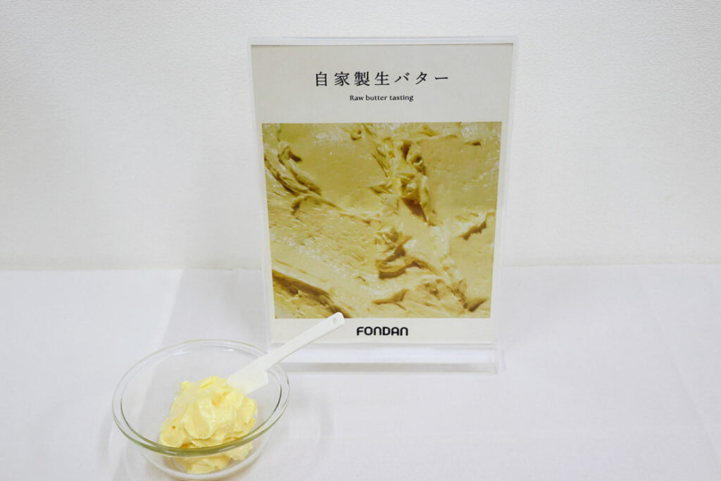 精製のための熱処理を行わない、フランスの “生バター” が持つ、長く豊かなコクの余韻に着想を得て素材に採用している。一般的なバターや発酵バターとは一線を画す、唯一無二の味わいだ。COCの考えは「放牧牛乳からお菓子までを一貫して手がける私たちだからこそ、この感動を再現できるのではないか。」この挑戦こそが、FONDANの原点です。搾りたての放牧牛乳を、必要最低限の加熱処理とノンホモジナイズ製法で丁寧に自社製造。「生乳が持つやわらかな風味と繊細さ」をそのままに守り抜き、長く豊かなコクの余韻を楽しめる、独自の自家製 “生バター” を完成させた。