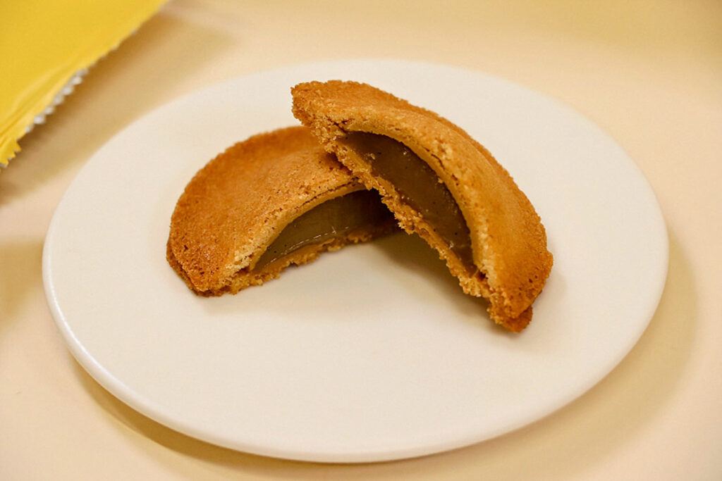 フォンダンサンド。口に入れた瞬間にとろける “生バターキャラメル” と、カリッとしたラングドシャの食感が融合した新感覚の一品。コクのある甘さとバターキャメルの風味が格別。