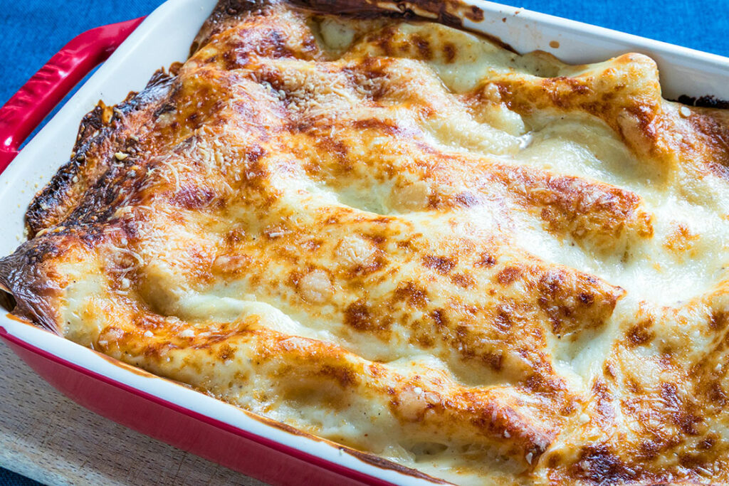 180〜200度に予熱したオーブンで40分ほどこんがりと焼きあげ、冷ませば、きつね色に輝く美味しそうなラザニアの完成です!