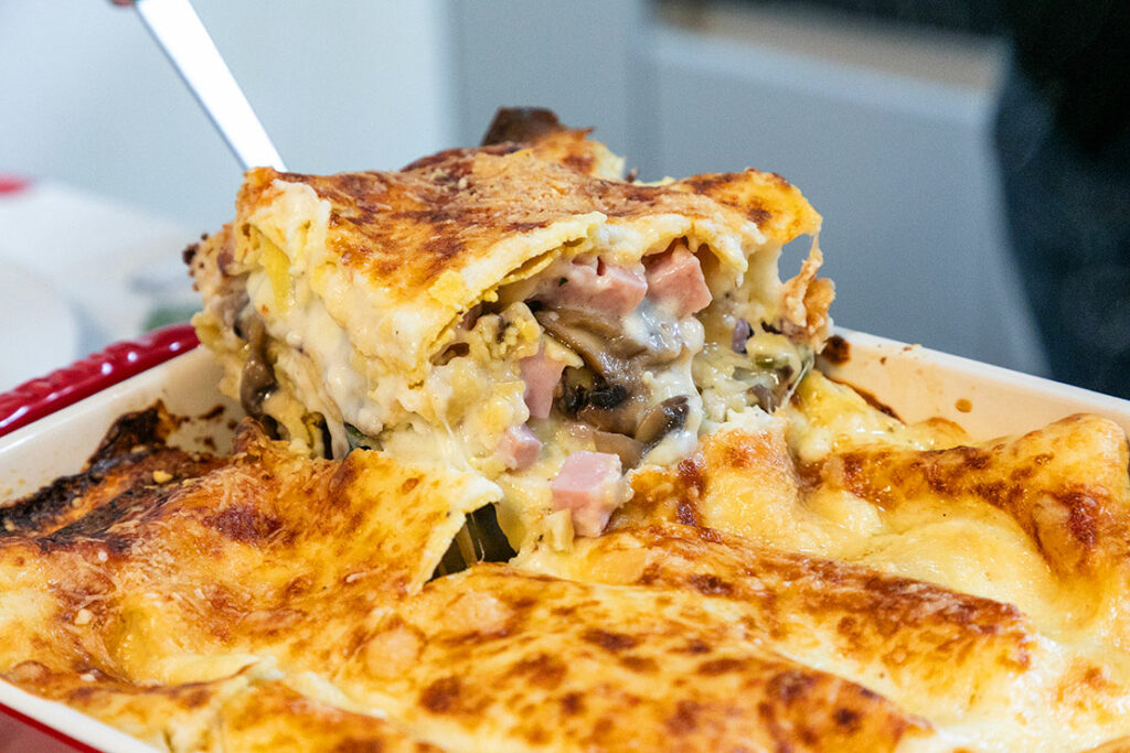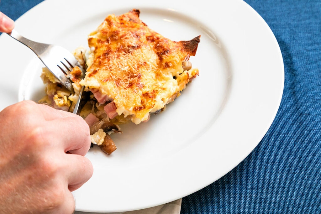「サクサクとしたラザニア生地の食感はもちろん、クリーミーなベシャメールソースと、ハムときのこの味わいが合わさり、絶妙な美味しさを楽しめます」