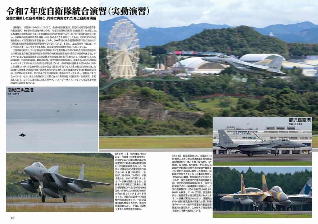 そのほか、カラーページでは特集記事にもリンクしてくる令和7年度自衛隊統合演習(実動演習)に加え、インド空軍MiG-21退役セレモニー、岐阜・浜松・入間~秋の航空自衛隊航空祭と岐阜で飛んだ飛行開発実験団創設70周年記念塗装F-15Jの細部、韓国ソウルADEX見本市、WINGSと室屋義秀&アーロン・デリューの競演、トランプ大統領来日なども紹介します。