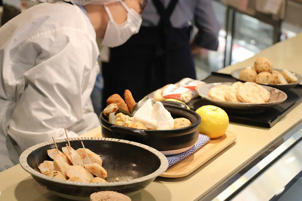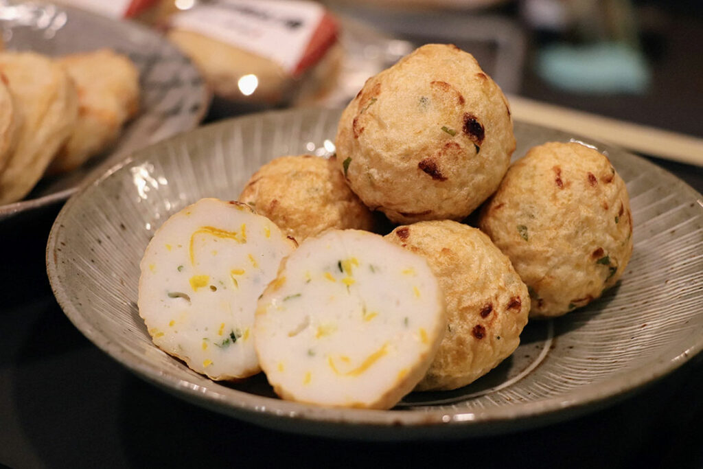 手取り半ぺん、蒲鉾、おでん種などを手がける老舗の中でも、特に人気なのが、ふわふわの食感が特長の「手取り半ぺん」。今回は、川根本町特産の柚子と大葉を合わせた、職人自慢の逸品「ゆず丸」を試食。爽やかな柚子の香りと風味が広がる「ゆず丸」は、おでん種としてもぴったり。おなじみの「由比の桜えび蔵」とともに、季節の味覚を楽しめる。ほんのり甘みのあるてんぷらは、一度食べ始めたら止まらない美味しさ。静岡の海の幸がしっかりと練り込まれた、こだわりの逸品。