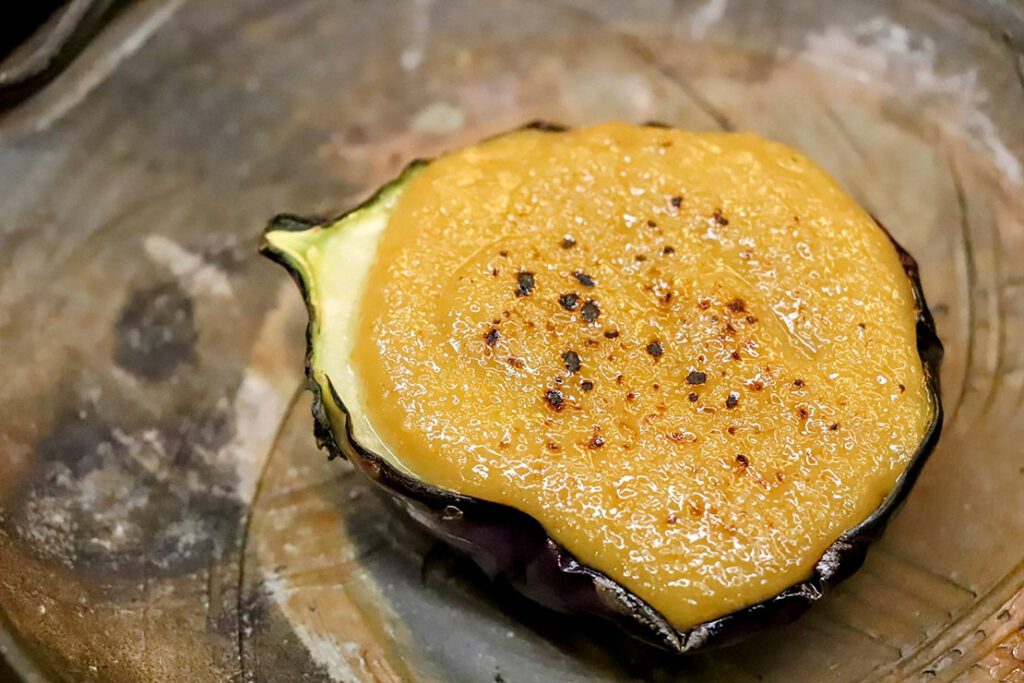 「折戸なす」は、家康公をはじめ歴代徳川将軍に献上された記録が残る由緒ある品種。丸みを帯びた形状としっかりとした肉質が特長で、なす本来の濃厚な味わいを堪能できる。