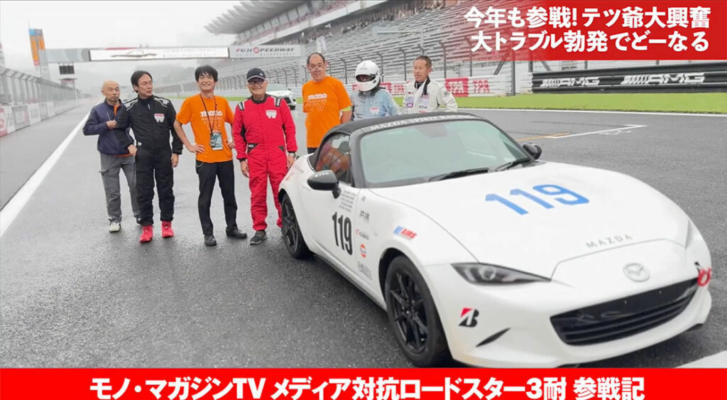 すでに自動車ライターにして、チーム「モノ・マガジンTV」のレーサーのひとりである海野大介さんが「マツダファンは集結せよ! ファンフェスタ&メデ耐レポート」で、レポートしてくれてるんですが、ようやく動画の方も上がってきたんで、こちらもご覧ください。昨年に引き続きまして、チーム「モノ・マガジンTV」が「第36回メディア対抗ロードスター耐久レース」(略称、メデ耐)に参戦してきました。
