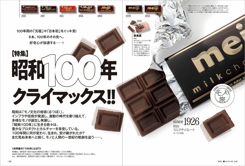 昭和は「モノ文化の坩堝(るつぼ)」。インフラや技術が発達して多様なモノが誕生し、「昭和100年」に生きる我々は、便利でエンタメ性に満ちたプロダクトとカルチャーを享受している。ありがとう、昭和元年からの100年間。世界と日本のブランド100周年アイテム、100歳の人が振り返る100年間など特別企画が満載。モノと人間の一世紀のドラマをイッキ見する!