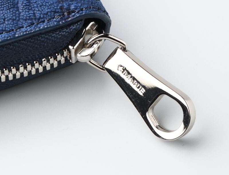 YKKの最上級ファスナー「エクセラ」を採用。流線型のスライダーは美しく磨かれ、高級感あふれる仕上がりだ。