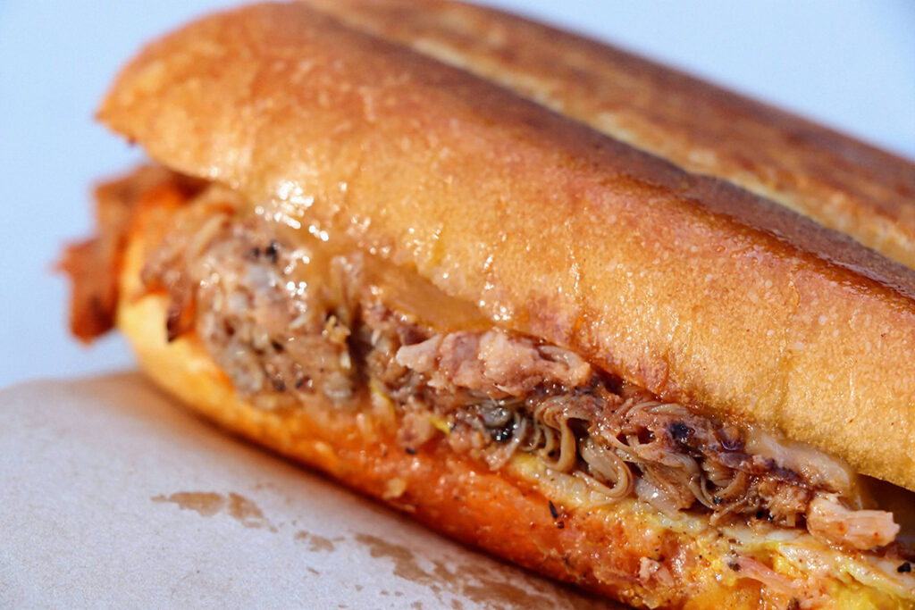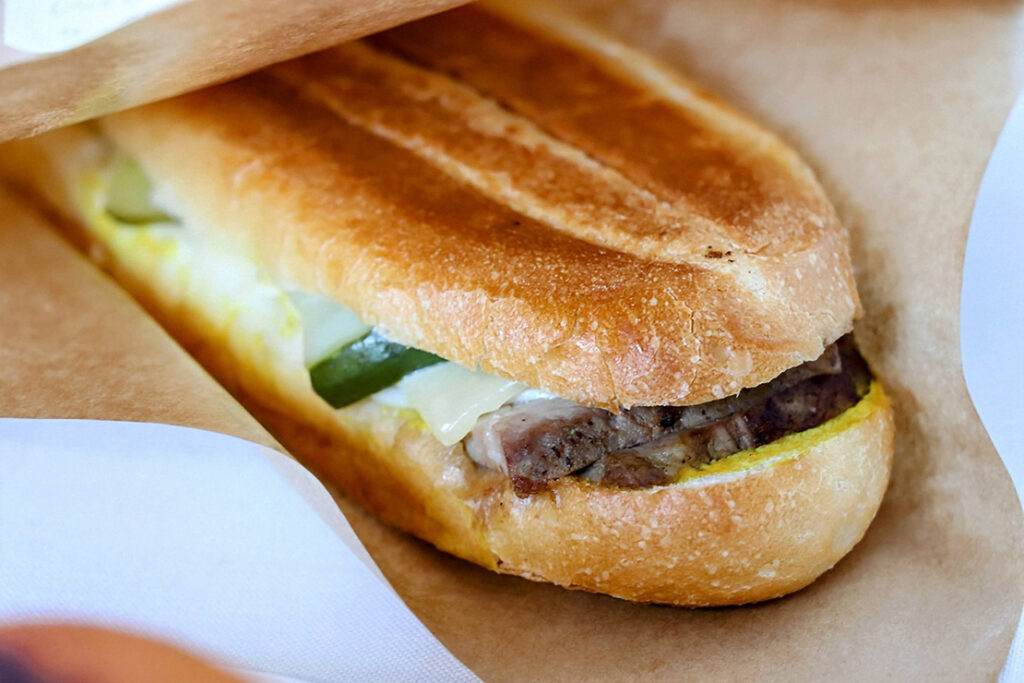 世界キューバサンド選手権2023で優勝した味がここに。特徴的なパンには、バゲットに似た「キューバンブレッド」が使われている。