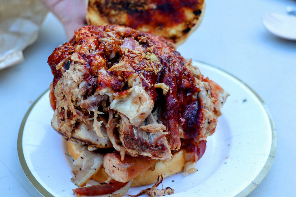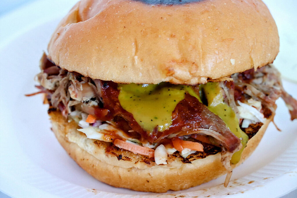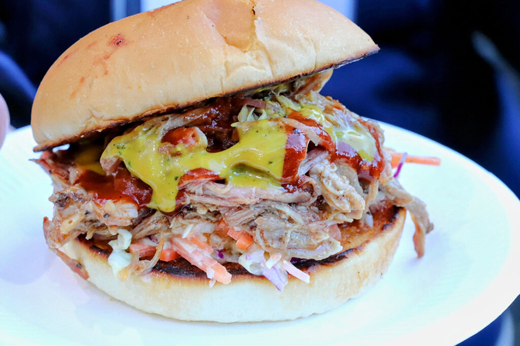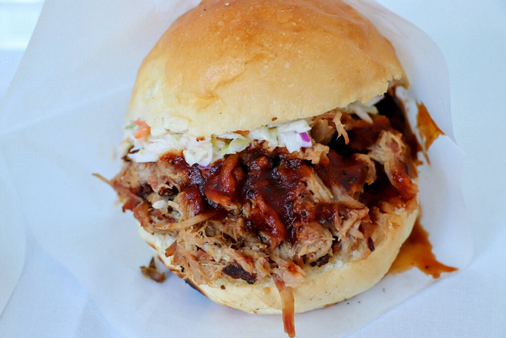 Pulled Pork Sand(プルドポークサンド)は、豚肩ロースをじっくり蒸し焼きやオーブンで柔らかくほぐし、BBQソースや特製ソースで絡めてパンに挟む、アメリカ南部発祥のサンドイッチ。コールスローやレタスを添えるのが定番で、ボリューム満点の一品だ。