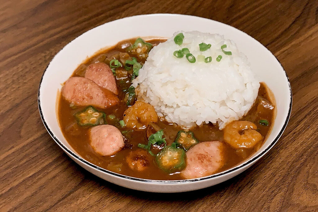 ケイジャンスパイスが効いたオクラ入りのスープをごはんにかけて味わう「ガンボライス」。本場アメリカ南部の郷土料理を、粘りが少なくスープになじむカリフォルニア州オリジナルの中粒種米「カルローズ」と、ジョンソンヴィルのソーセージを組み合わせた特別バージョンで提供。試飲したスープは、ピリッとしたエッジの効いた辛味と、奥深い旨みが広がる仕上がりだ。