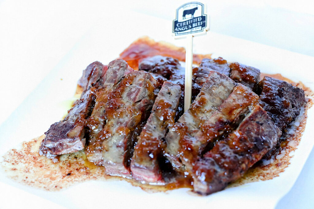 アメリカを代表するプレミアムビーフブランド「認定アンガスビーフ™」。厳選されたハラミを豪快に焼き上げたフェス限定のハラミステーキは、赤身の旨みと霜降りの絶妙なバランスが織りなす、圧倒的なジューシー感を誇る逸品。