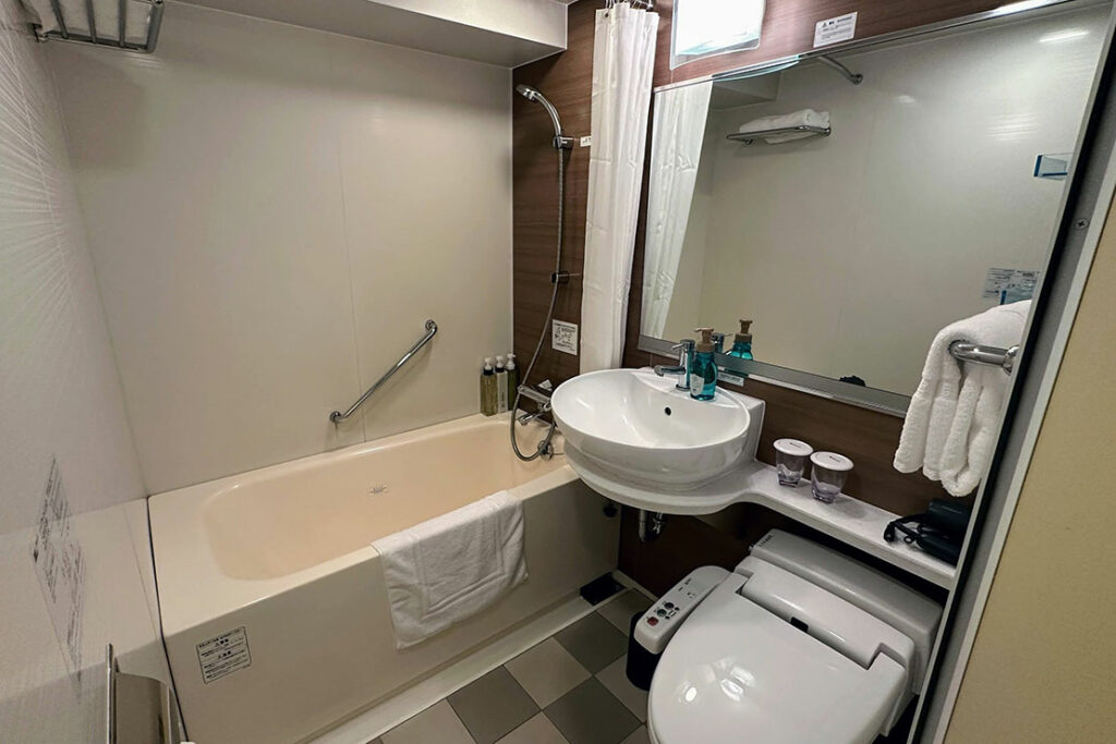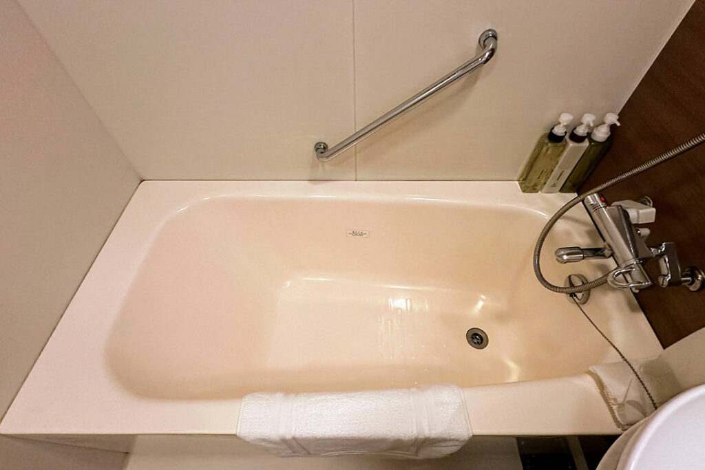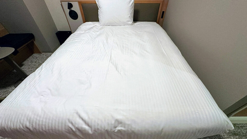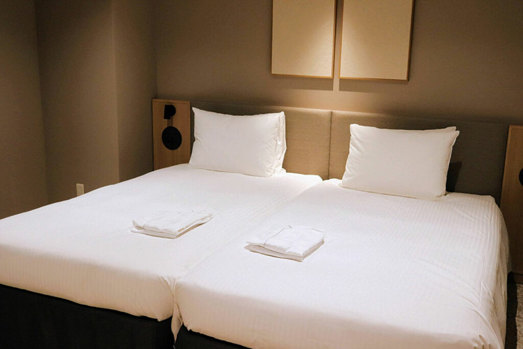 試泊したモデレート。部屋に入ってまず目に入るのは、シンプルで清潔感のあるベッド。シモンズ製のマットレスは、体をしっかり支えつつも沈み込みすぎず、寝返りもスムーズ。枕の高さも絶妙で、久々に途中で目覚めることなく朝までぐっすり。枕の両端にある電源コンセント4つ。これは嬉しい!そして宿泊時いつも一番気になるバスルームは清潔&機能的! ユニットバスながら、使い勝手は申し分なし。シャワーの水圧も安定していて、温度調整もスムーズ。アメニティはボディソープ、シャンプー、コンディショナーが色分けされたポンプ式。視認性も高く使いやすい。洗面台まわりも整理されていて、鏡も曇りなし。高機能トイレも完備されており、細部まで配慮が行き届いている。バスタオル、フェイスタオルともに厚みがあり、肌触りがとても良く使うたびにちょっとした癒しを感じてしまった。「派手さはないが、快適さはしっかりある」そんな試泊体験だった。シモンズベッドでの安眠、清潔感あるバスルーム、そしてふかふかのタオル、この3点が、滞在の満足度を大きく引き上げてくれた。