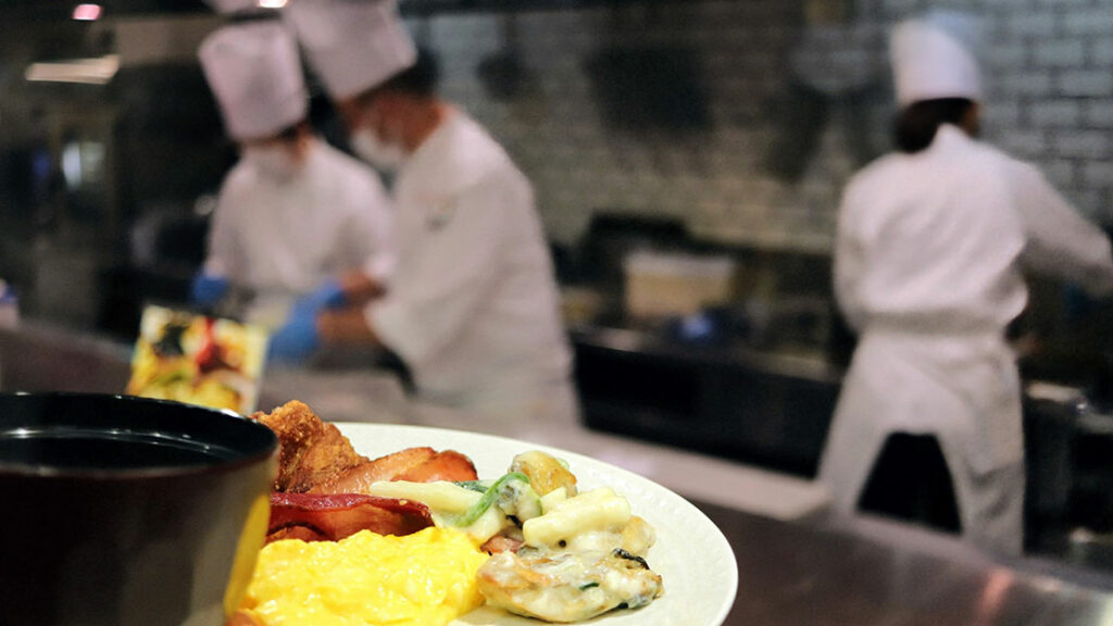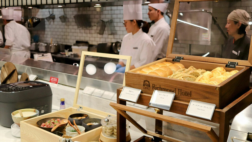 浅草、リッチモンドホテルの朝を彩るのは、ホテル併設1階『和 なごみ Café&Dining』のビュッフェ。フレッシュなサラダから出来立てのホットミールまで、約40種類の料理が並び、旅や仕事の始まりを演出! グループシナジーを活かしたロイヤルホストのブレックファーストを彷彿させるクオリティは、国内外のゲストを大満足させるに十分だ。