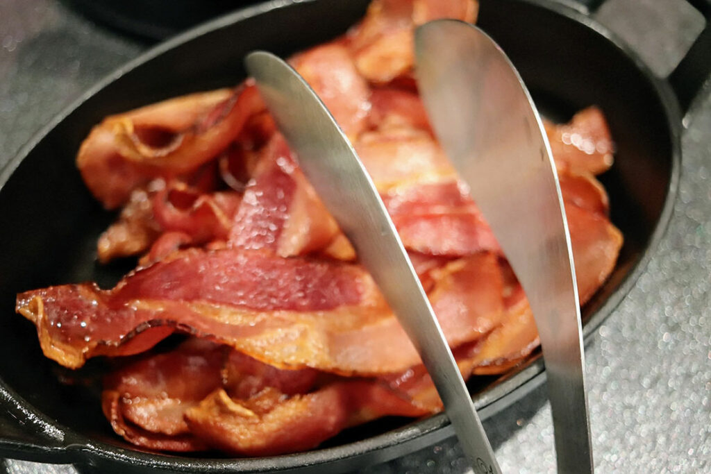 ライブキッチンでは、目の前でスタッフがラーメンやベーコンエッグ、抹茶パンケーキを調理してくれる。オーダーしてから仕上げるので、どれも出来立ての熱々を楽しめるのが魅力だ。午前6時30分、早朝に味わったラーメンは喜多方風の平縮れ麺。焼豚の脂がじんわりと広がり、朝から贅沢な一杯。ライブ感と旨みが重なるおいしい「朝ラー」だった。