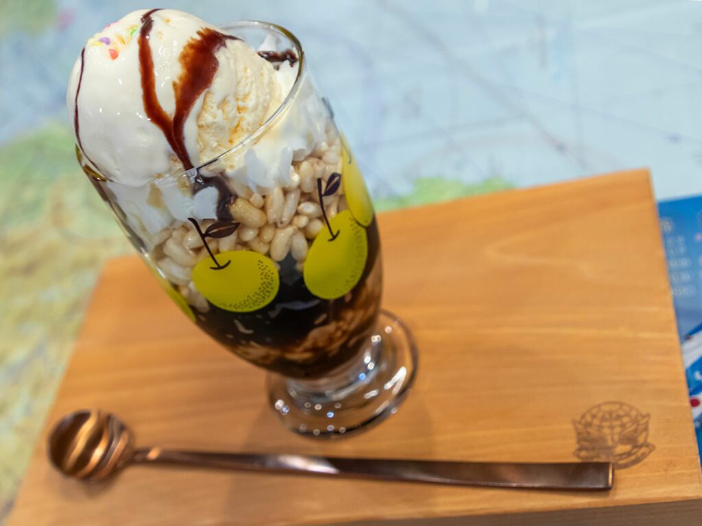 店舗では、ここでのみ取り扱う「ぽんやパッチ(ワッペン)」(春山氏も在籍した第32教育飛行隊のパッチデザインをイメージさせます)も販売しており、ブルーインパルスをはじめとした航空関係のディスプレイもあります。また「航空機ラベル」のスペシャルパッケージの商品もあったりと、航空機ファンにも楽しいお店です。春山さんが自ら淹れてくれるコーヒー、紅茶に加え、コーンフレークの代わりにポン菓子を使った「ぽんパフェ」や米粉シフォンケーキもぜひお試しください!