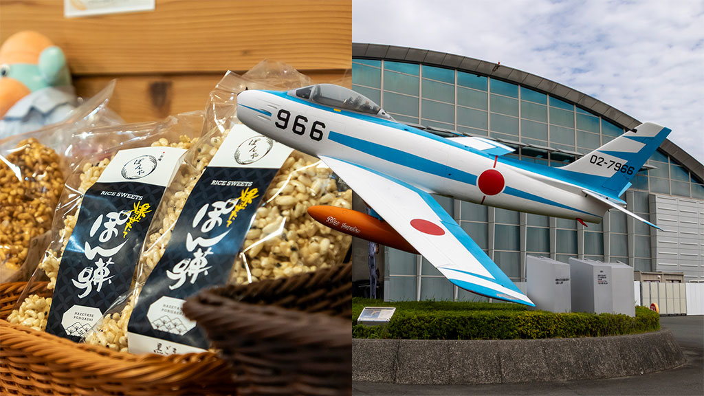 お店は浜松の市街地からクルマで1時間以内の郊外、天竜川沿いの山間にありますが、こうしたロケーションを選んだのは、製造の際に菓子の名の由来ともなっている「ポン」という大きな爆裂音がすることから、住宅街からは離れたところでの営業を決めたというのが理由だそうです。浜松基地の航空祭や撮影、航空自衛隊浜松広報館エアーパーク訪問などとあわせて、ドライブがてら足を延ばしてみてはいかがでしょうか(ただし原則平日は製造のみで店舗営業はありません。エアーパークの売店でも一部商品を取り扱っています)。