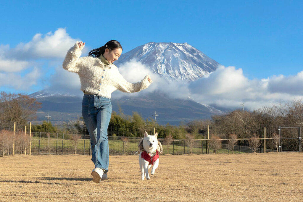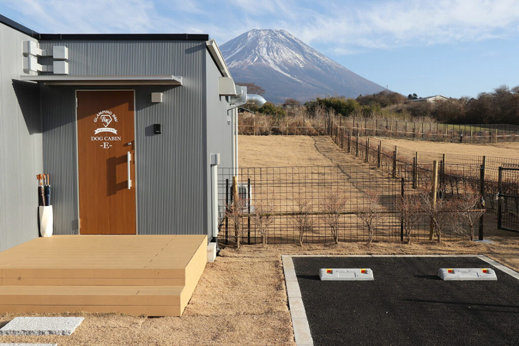 愛犬家の為のドッグキャビン。広さ500㎡のプライベートドッグランはキャビンに隣接しており、リードなしで自由に駆け回れる。他の犬や人を気にすることなく、飼い主も安心して過ごせるのがGOOD。キャビン内にバスルーム・トイレも完備されているから、ペット連れのファミリーやカップルにも最適だ。このドッグランはとてつもなく広いので飼い主も犬と一種にジョギングをすることができる。