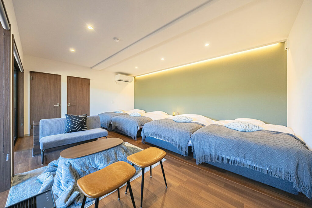 ※5名でのご利用の場合、やや手狭にはなりますが寝具を1組まで追加可能です。