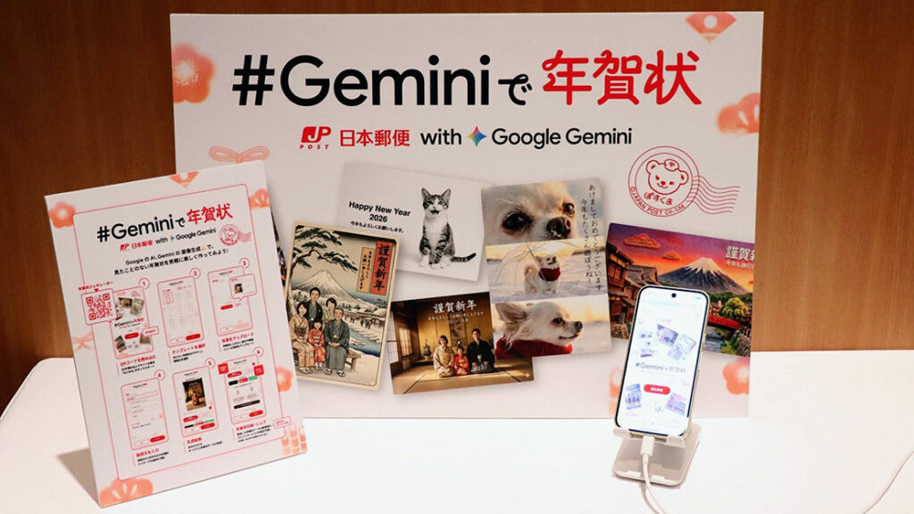 日本郵便(本社:東京都千代田区)は、「年賀状はこんなに簡単に、楽しく作れる!」をコンセプトに、Google が提供する AI「Gemini」※ の最新画像生成モデル「Nano Banana Pro」を活用した無料で手軽に、かつユニークな AI 年賀状作成ツールの提供を開始している。 生成した年賀画像は、実際に年賀状として差し出すことができるから、年賀状作成の際に利用したいシステムだ。