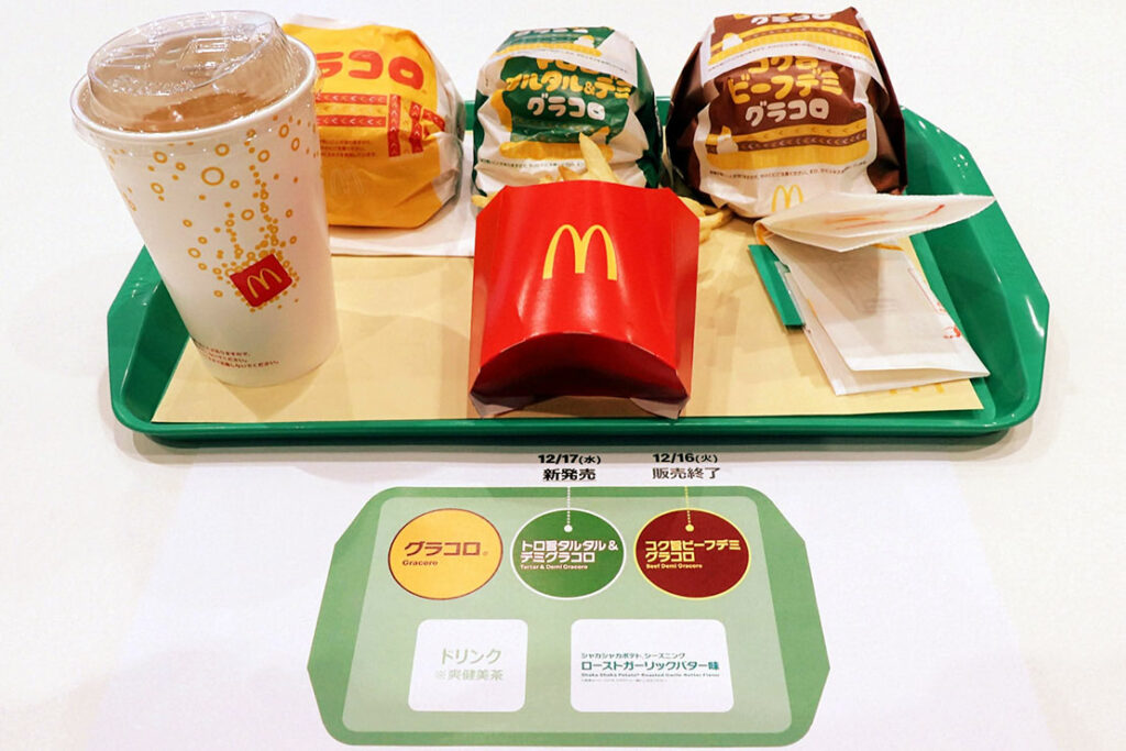 日本マクドナルド(本社:東京都新宿区)は、グラコロ第2弾の新商品、「トロ旨タルタル&デミグラコロ」を12月17日(水)から全国のマクドナルド店舗にて期間限定で販売しているぞ。現在販売中の「グラコロ」と、「シャカシャカポテト® ローストガーリックバター味」も引き続きお楽しめるラインナップ。 マクドナルドのメニューにグラコロが並ぶと冬の到来だ。