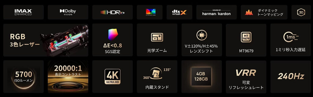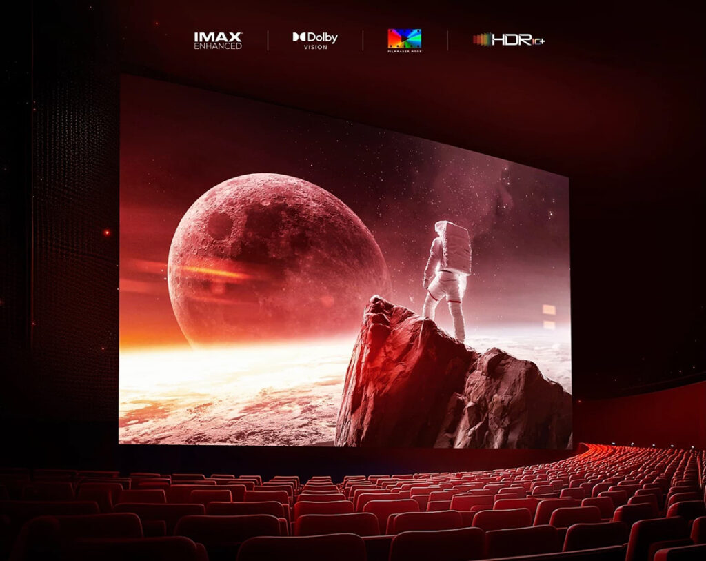 IMAX Enhanced、Dolby Vision、HDR10+ など複数の画質認証に対応し、映画館さながらの映像体験を家庭で楽しめる。